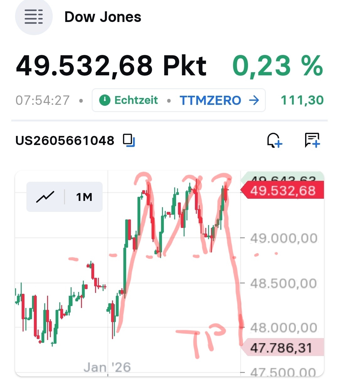 NovoNordisk: Gestern fiel der Kurs unter die 50-Euro-marke trotz guter Nachrichten. Wettbewerber ElyLilly wird im laufenden Quartal nicht ebenfalls mit einer Abnehmpille kommen könne. Die FDA wird früestens im April über einen Antrag entscheiden. Heute dann die Erholung und vielleicht ein erneuter Anlauf die 200-Tage-Linie zu nehmen.