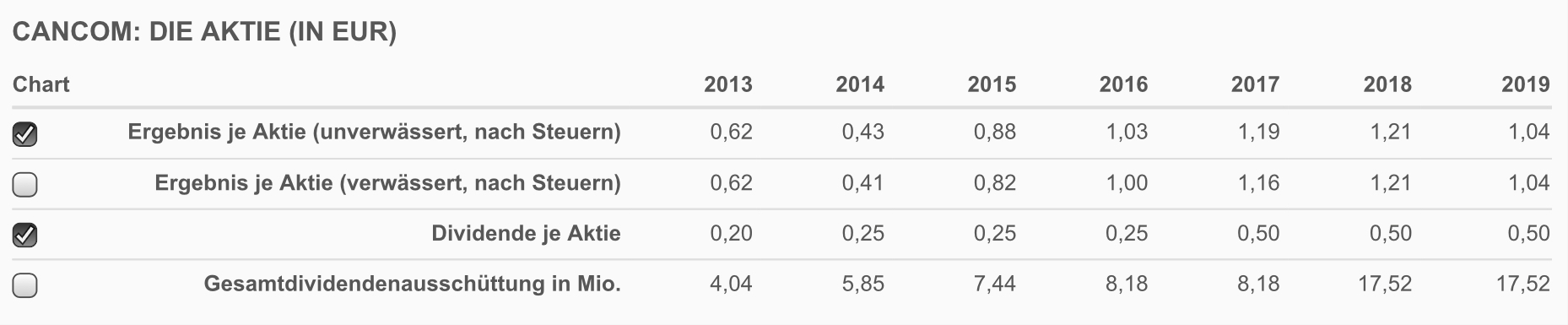 So mal nebenbei: Erhöht Cancom nächstes Jahr die Dividende? Vom Muster der letzten Jahre wäre es wieder Zeit. Von 2014 bis 2016 ist die Dividende gleichgeblieben, dann eine Erhöhung und von 2017 bis 2019 wieder gleich geblieben. Wenn es ein Muster gäbe, wären nächstes Jahr entweder 0,75€ oder 1€ fällig