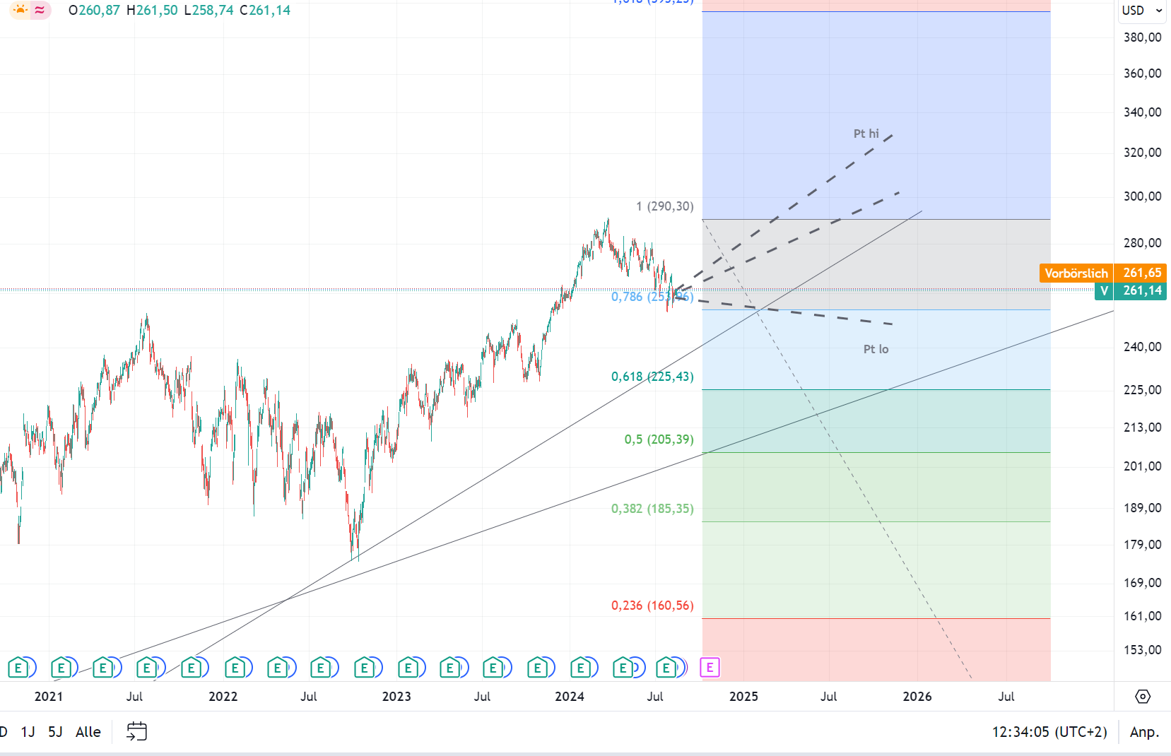 Visa hat nach Börsenschluss am Dienstag einen Kursanstieg von über 2% verzeichnet, nachdem der Zahlungsdienstleister Ergebnisse für das zweite Quartal des Fiskaljahres 2024 präsentierte, die die Erwartungen von Wall Street übertrafen. Der EPS belief sich auf $2.51 und schlug somit die prognostizierten $2.44, während der Umsatz mit $8.78 Milliarden die erwarteten $8.62 Milliarden überstieg. Die robuste Leistung wird durch ein Wachstum des Zahlungsvolumens von 8% und einen Anstieg des grenzüberschreitenden Volumens (ohne Intra-Europa-Transaktionen) von 16% im Vergleichszeitraum gekennzeichnet.