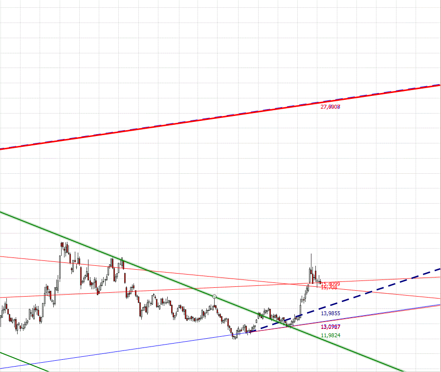 Auch hier ist noch nichts passiert. Nur solltet ihr aufpassen wenn bei Gold der Kanal nach unten verlassen wird und bei Silber die untere Dreieckslinie.