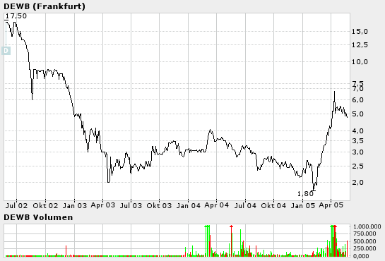 Hingegen scheint die Party bei DEWB derzeit vorbei zu sein. Der unauf-