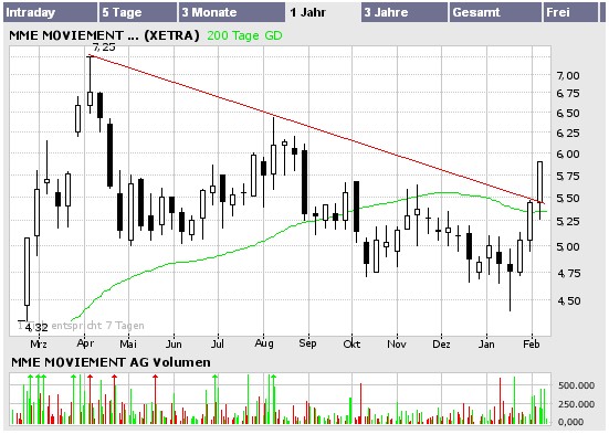 Es könnte durchaus sein, dass der MME-Kurs im Verlauf des Tages nochmals die Vortagsschlusskurse nach unten andippt,da ein kleines Gap von gestern auf heute gerissen wurde!Ansonsten geht die Reise weiter gen Norden!!!