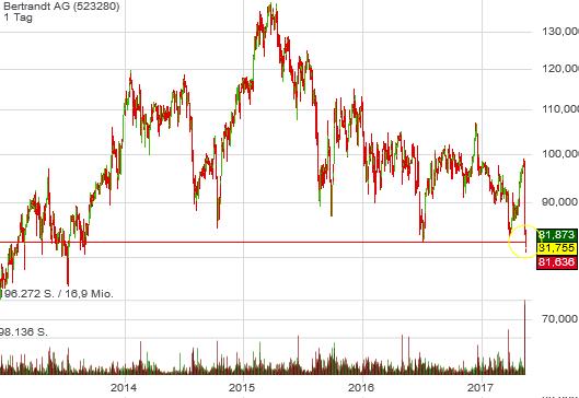 bei markt- und charttechnisch angeschlagenen aktien wie Bertrand stellt sich die frage, ob man sie abstoßen soll ("technischer" verkauf, tausch oder einfach zur liquiditätsbeschaffung); markttechniker wie ACHIM MATZKE (zuständig für den "Bereich Technische Analyse & Index Research" der Commerzbank) befürworten den "technischen Tausch" solcher aktien, http://www.faz.net/aktuell/finanzen/aktien/...rticle=true#pageIndex_2 : "Als technische Konsequenz befindet sich Bertrandt in einer technischen Gegenbewegung auf die vorherige, mehrjährige Hausse. Da die Aktie durch die Unterstützungszone zu rutschen droht und sich die mittelfristige, relative Schwäche gegenüber dem S-Dax in den vergangenen Wochen sogar noch ausgeweitet hat, bleibt Bertrand ... ein technischer Tausch." MATZKE verkennt die sogenannten erschöpfungsphasen des marktes, in denen sich bullen und bären innerhalb der jeweiligen trends ein letztes mal aufbäumen; im abwärtstrend ist es dann für einen verkauf der aktie zu spät, es winkt die chance eines rebound, die von tradern an der außenlinie gesucht und angesteuert wird |