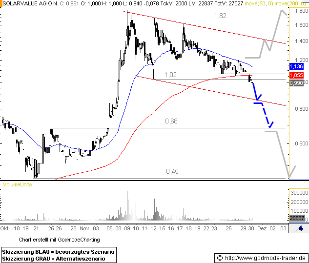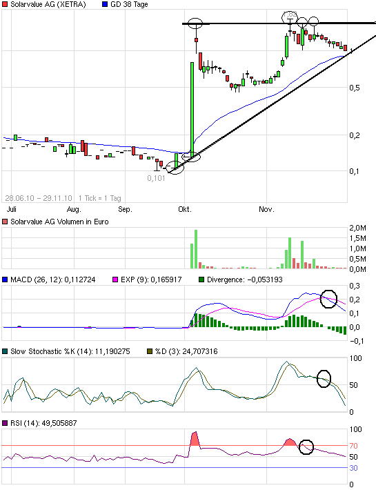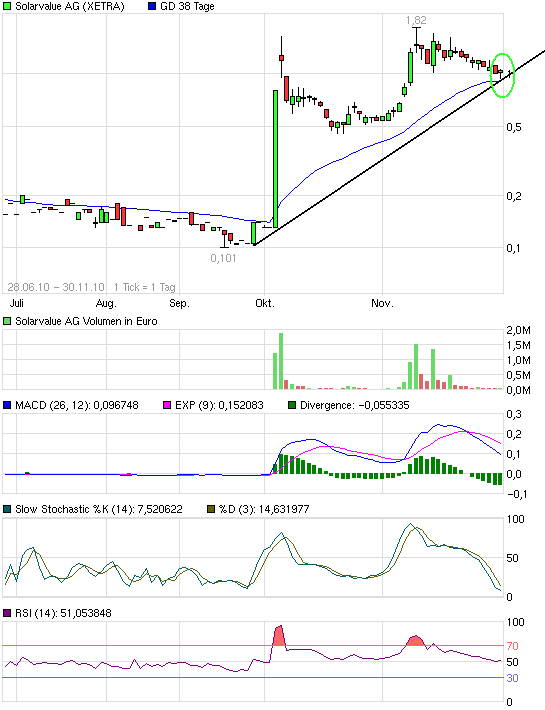 Ich habe alles gestoppt, verkaufe nichts mehr unter mein Einkaufspreis und setze auch keine Stopploss. Ohne StoppLoss währe ich in die Gewinnerzone gewesen, mit 2000 Trina Solar zu 2,53 durchschnitt währen 42.000 gewesen, mit 20.000 Gewinn raus. 2100 Aixtron zu 4,36 durchschnitt währen ca. 53.000 gewesen. mit 15.000 Euro Gewinn raus. Meine Verluste zone sind Solon-bleibt wie er ist, Nordex erhohe um 1470 stück, Solarwold, bleibt wie er ist, Conergy-erhohe um 32000 Stück (bis 0,40 Euro). Solarvalue Verkaufe ich nicht erstmal. Mein Verkaufs ziel ist 10 bis 100 Euro, je nach denn wie die Entwicklung ausfällt.