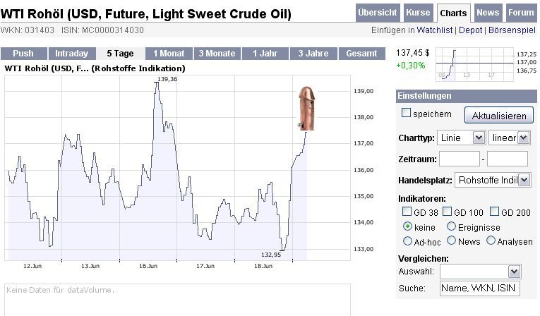 Wir werden im August unter weit 100$ stehen. Das ist jetzt schon klar, aber der Preis, den wir dafür zahlen, ist sehr hoch. Steigende Arbeitslosenzahlen, stagnierendes oder rückläufiges Wirtschaftswachstum in den großen Industrieländern, Schwellenländer fallen zurück, hohe Inflationsrisiken, Die Frage ist, ob es das wert war.