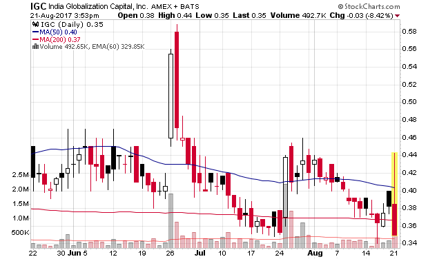 August 21, 2017 7:00 AM IGC Announces Financial Results for Quarter Ended June 30, 2017 BETHESDA, Md., Aug. 21, 2017 (GLOBE NEWSWIRE) -- India Globalization Capital, Inc. (NYSE AMERICAN:IGC) announces financial results for the quarter ended June 30, 2017.