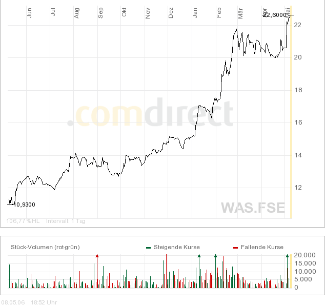 Erstaunlich ist für mich, dass auch jetzt, wo WASAG seit Oktober 2005 über 100% zugelegt hat, so wenige aufmerksam geworden sind.