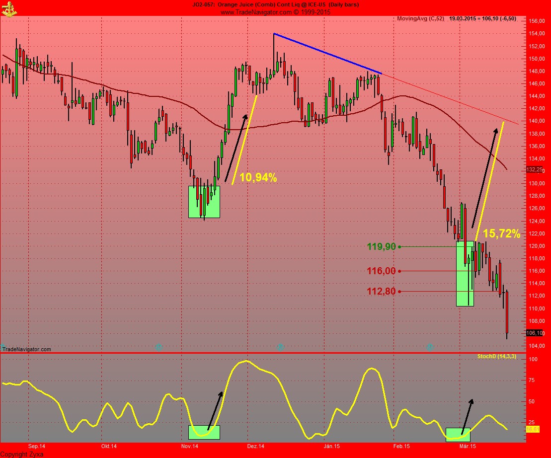 Im kongreten Fall bei Orangensaft ging der Trade leider in die Hose, aber das ist ja kein Problem, ich hab fuer mich alles Richtig gemacht, war nicht emotional und habe meinen Plan verfolgt, bis zum Schluss.....