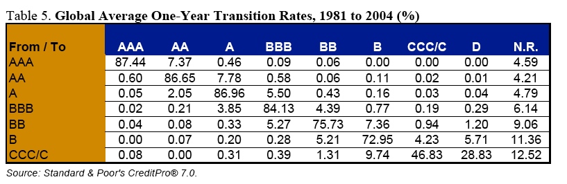 Dort steht und Rating B (dort beginnt der Junk-Bond-Bereich) ein Wert von 5,71 %. auf einen 1-Jahreshorizont.