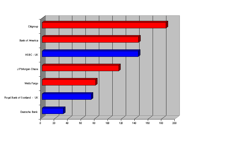 Allein die großen US-Banken mussten wegen der Turbulenzen an den Finanzmärkten bisher Ausfälle von weit mehr als 50 Milliarden Dollar hinnehmen. Bank of America-Chef Lewis rechnet bei einer Reihe von Instituten in den nächsten Monaten mit weiteren Abschreibungen.http://newsticker.welt.de/index.php?channel=wir&module=dpa&id=16406254