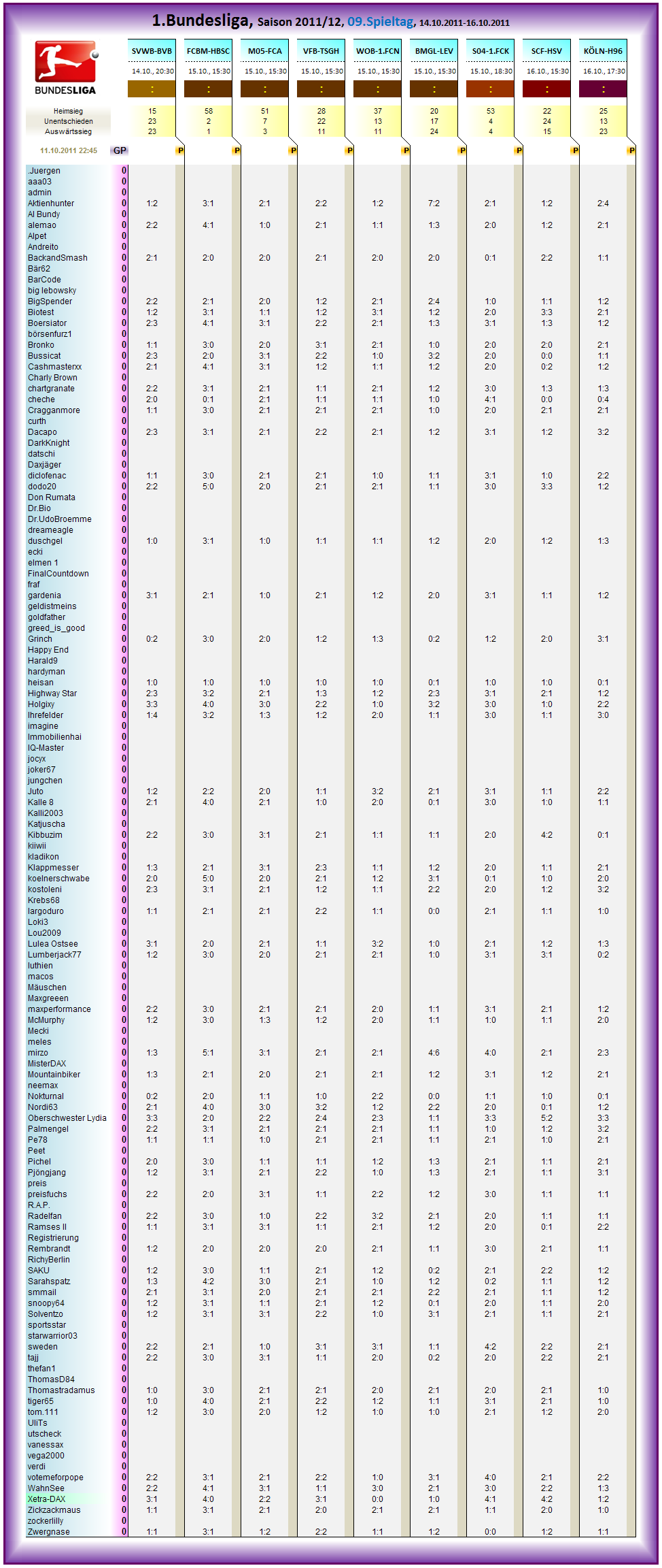 1.Bundesliga, Spieltag 09