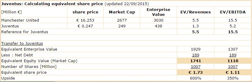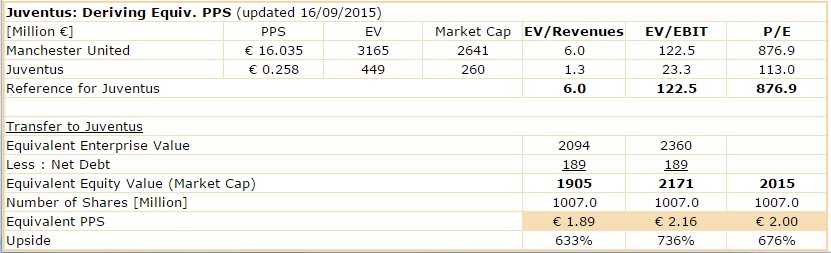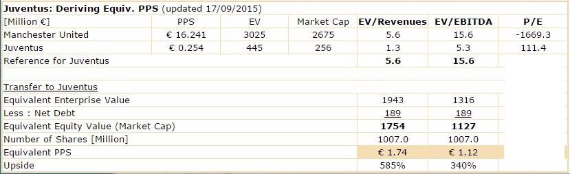 Der Kurs von Juve könnte vervierfachen und man wäre immer noch günstiger als ManU bewertet