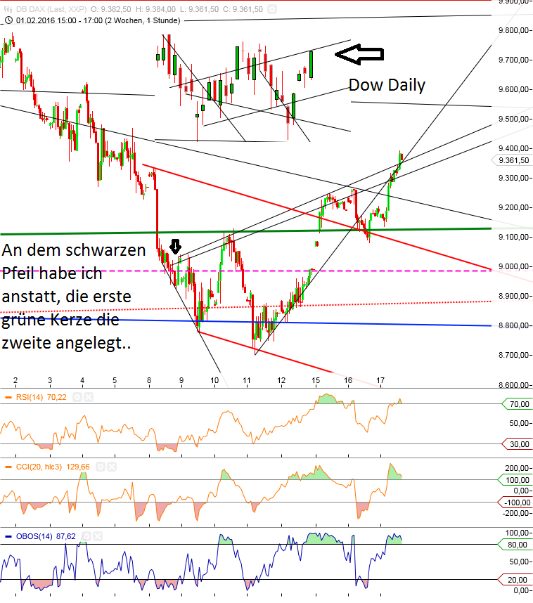 Daß das heute schon war . Wenn die 400 überwunden werden, geht es auf die nächste Stufe. Wie schon gesagt, ärgere ich mich, daß ich die Calls verkauft hatte. Wie ich werden die Leute steigenden Kursen hinterherlaufen, vor allem, wie ich meine am Freitag. Mars Trigon Jupiter läßt nichts anderes zu . Erst danach sollte man wieder die Seite wechseln . Ich hoffe, daß heute Abend und morgen ein Rücksetzer kommt. Da ich die Fibonaccizahlen und goldene Schnitte gelesen hatte, Konnte ich die Nacht den Komputer im Hirn nicht abstellen, und heutige Müdigkeit machte mich lahm. Macht aber nichts. Hatte vorher schon tüchtig verdient. Das wünsche ich uns allen, und ich bin sicher, daß dieser Wunsch in Erfüllung geht. Interessant war heute die Nachricht von erhöhten Preisen, obwohl Öl gefallen war. Es könnte sein, daß die Fed hinterherlaufen muß, was vielleicht auch erwünscht ist. Daß Draghi die Geldmengen erhöhen will und Japan Negativzinsen einführt, erscheint mir Aktivismus zu sein. Aber wer will schlauer sein als diese Leute ? Genaueres später ? |