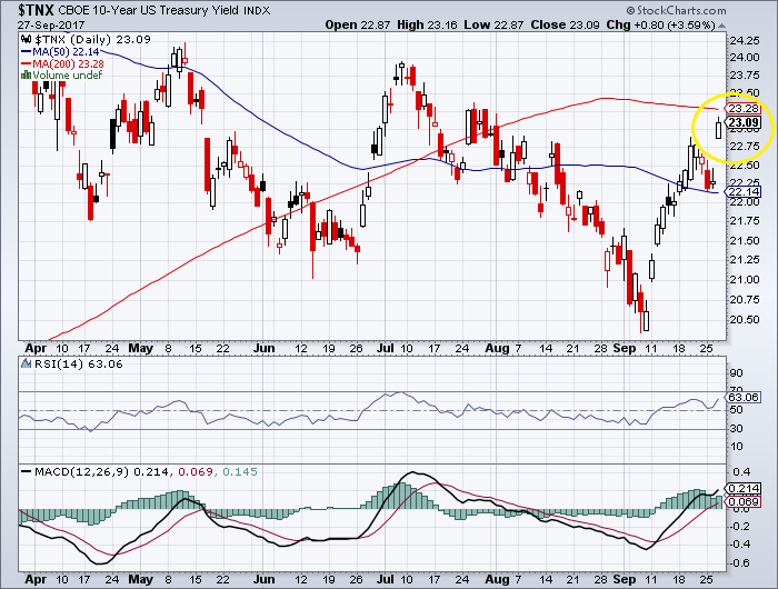 Den damaligen recht steilen Anstieg der Renditen bei den 10jährigen nach der Wahl hatten die Agrargüter allerdings nicht nachvollzogen. Zu Anfang 2017 wurde jedoch der Verfall im gemeinsamen Trott hier wieder bis zu Anfang September aufgenommen. Seit diesem Zeitpunkt klafft jedoch eine erhebliche Lücke aka Divergenz in den Entwicklungen auf.