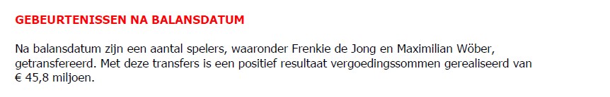 Ich würde darauf hinweisen, und es ist dir nicht übel zu nehmen weil Ajax nur auf Niederländsch veröffentlicht, aber hier macht Ajax schon ein klare Ausssage es geht hier schlicht um ein transfergewinn von 45,8 Mio. Euro (z.B. weil Ajax für Frenkie de Jong ziemlich hohe Beiträge an den Ausbildungsvereine zahlen müsse.)