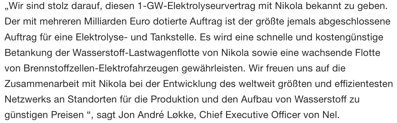 Die 2 GW werden kommen müssen, wenn man Nikola, Yara, H2 Bus, Kalifornien, Alstom, Vattenfall, P2G Australien usw bedienen möchte.