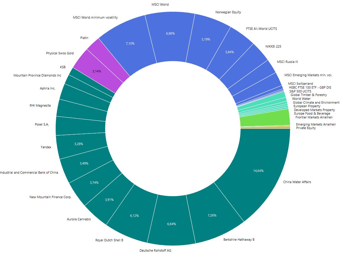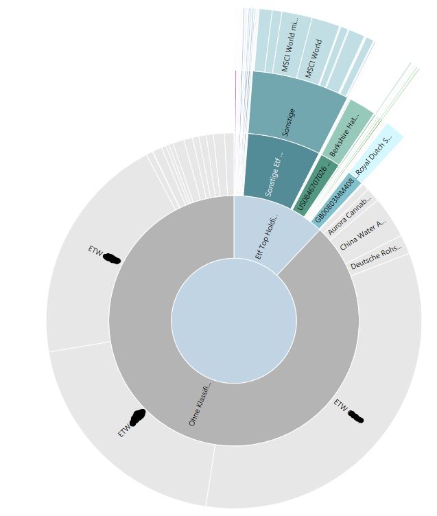 Innerhalb des Depots stechen die Anteile von Berkshire Hathaway und Royal Shell B (hier sind nicht nur Etf-Prozente, sondern auch die Aktien eingerechnet) hervor.