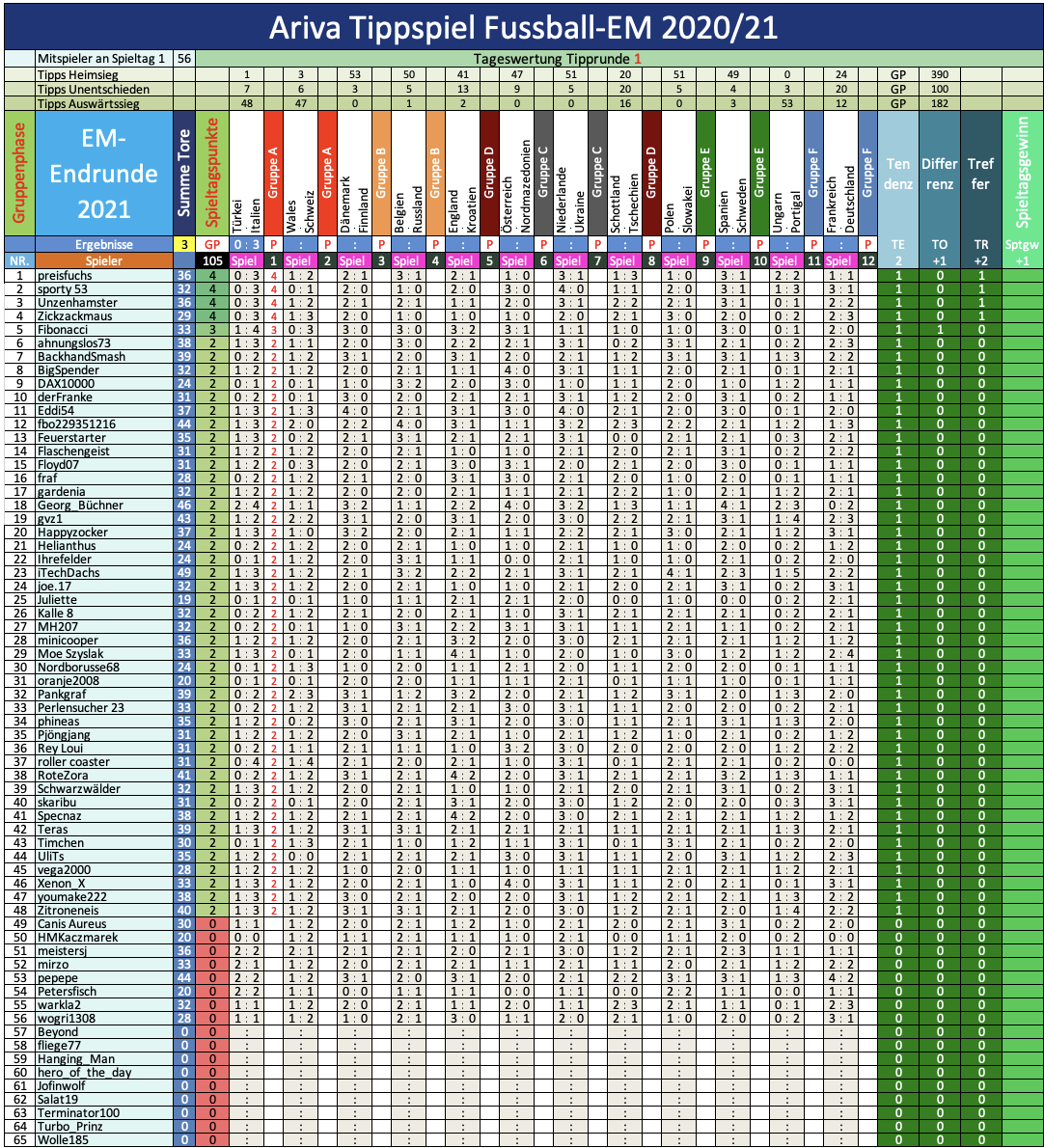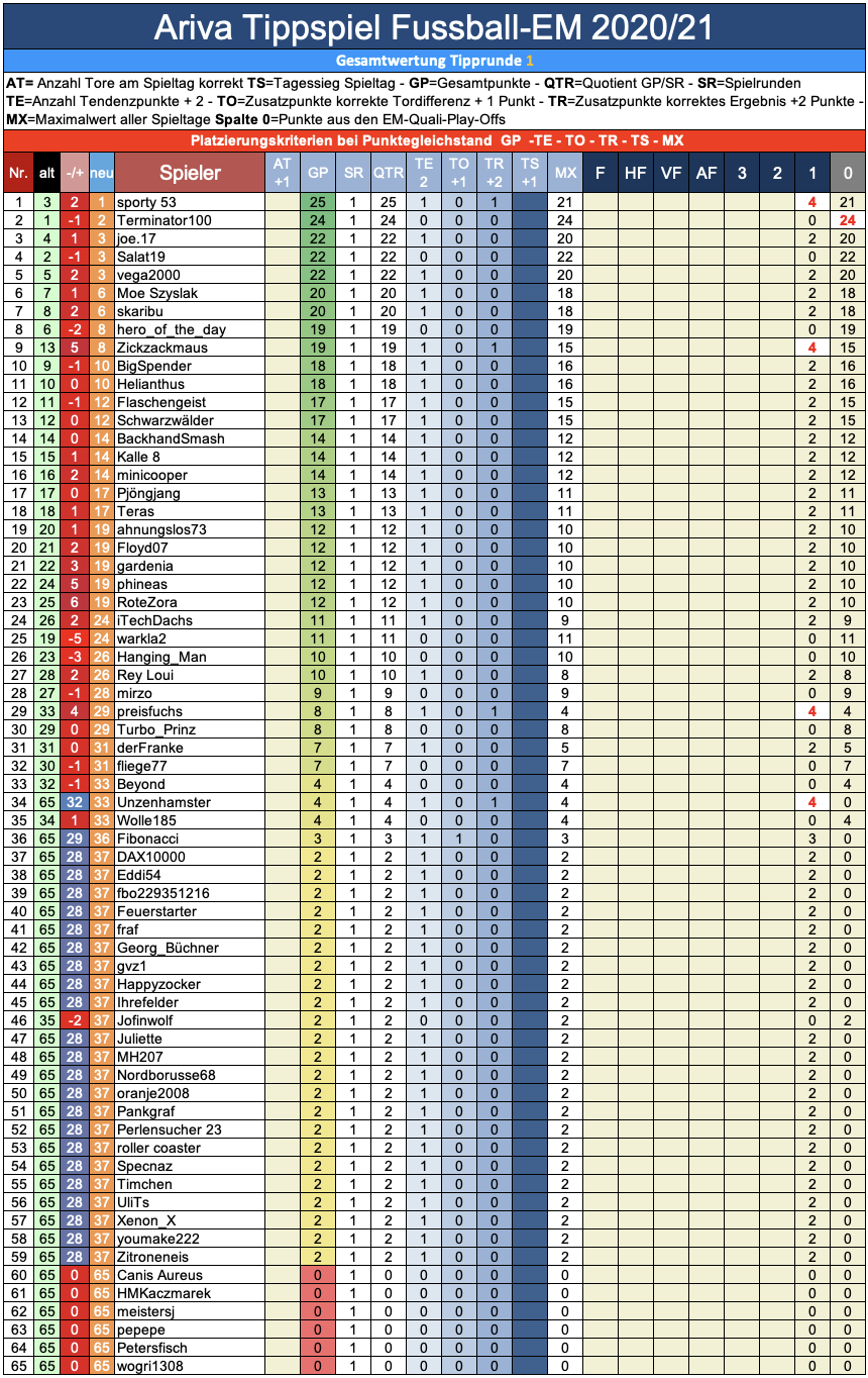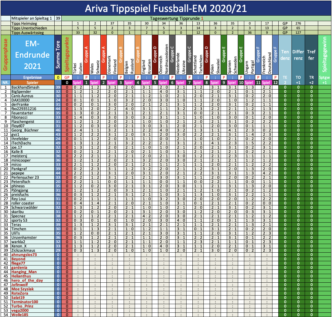 EM 2020/21, TippR 1, die 1. Vorrunde