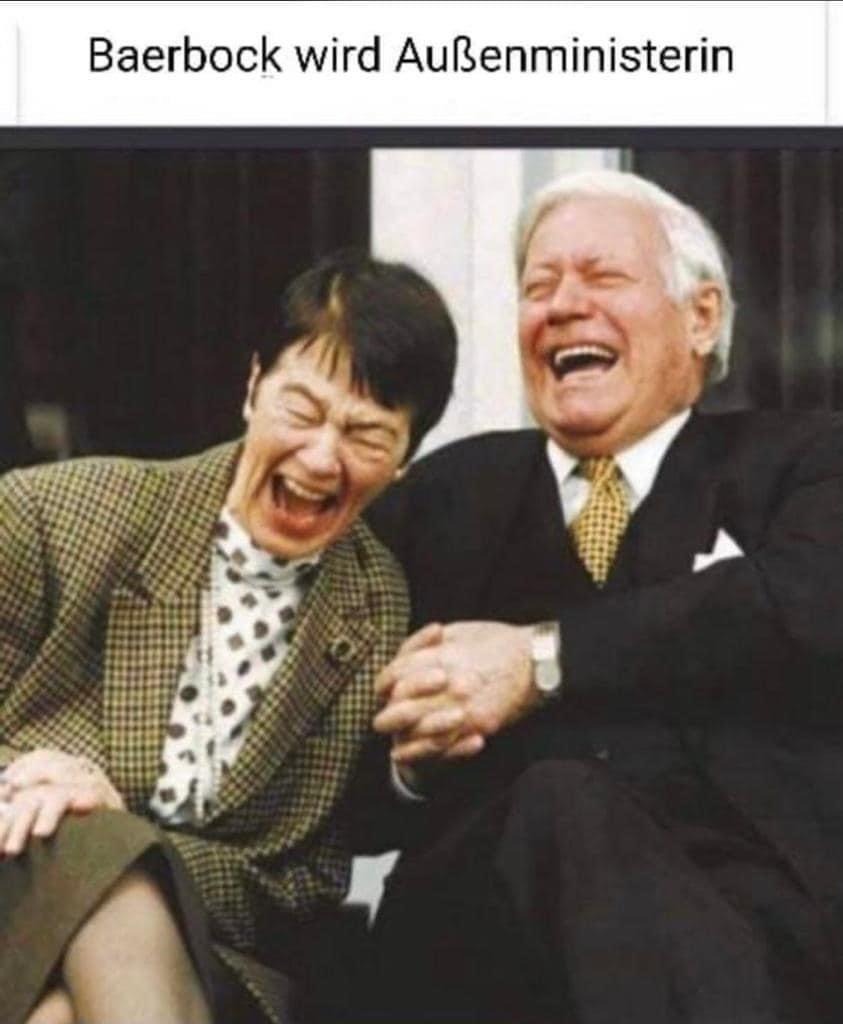 lachen. Wenn ich mir die Bilder so vorstelle: Baerbock neben Putin...Erdogan...Jinpin...