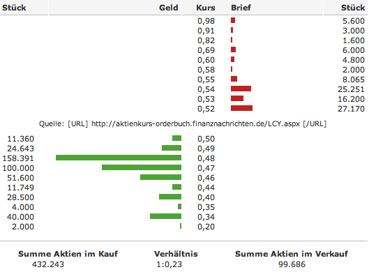 Aktuell hält Lycos Europe Barmittel um 170Mio €, dazu die diversen Markenrechte, Beteiligungen, sowie jede Menge Patente und neue Produkte. Die Zielgruppen Erreichbarkeit steigt ständig. Bei 311Mio ausgegebenen Aktien notiert Lycos aktuell unter Barcashniveau! Den Rest gibt es quasi geschenkt dazu. Selbst ein Drittklässler kann sich ausrechnen, welches Rad hier gedreht wird!