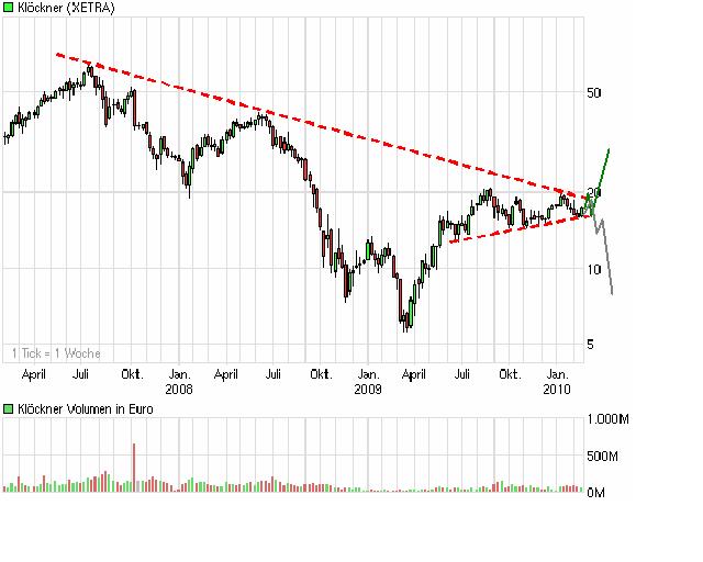 Für mich heißt das, Klöckner innerhalb der Range zu traden. Bei Über-oder Unterschreiten der 20 EUR oder 15 EUR Marke kann man sich entsprechend positionieren zur Gewinnoptimierung / Risikoverringerung. |