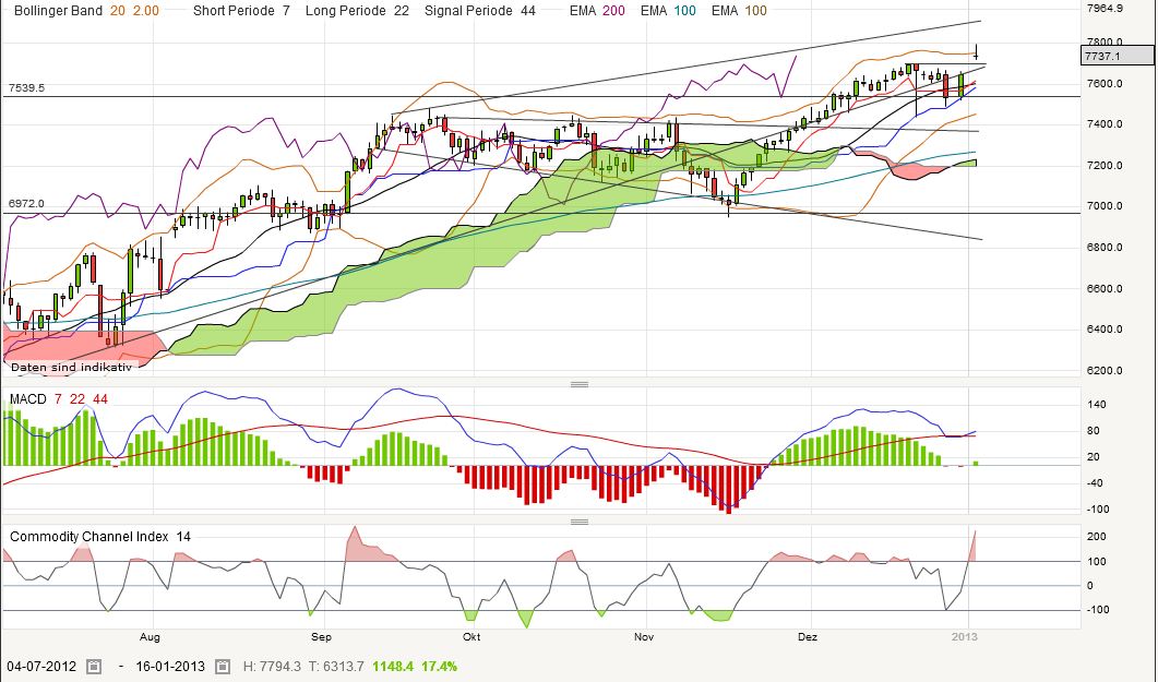 also kleine konsolidierung, die idealerweise oberhalb der 7700 verlaeuft, dann zweiter anlauf richtung 7800. an den duennen handel in der ersten boersenwoche denken, immer noch viele haendler in urlaub ...