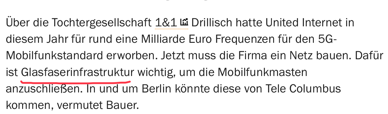 Der CEO Degenhardt wollte das Glasfasernetz verkaufen , um TC zu entschulden. Dies will United natürlich nicht. Deshalb geht er jetzt. Sicherlich hat Drillisch was vor im Hinblick von G 5 ???