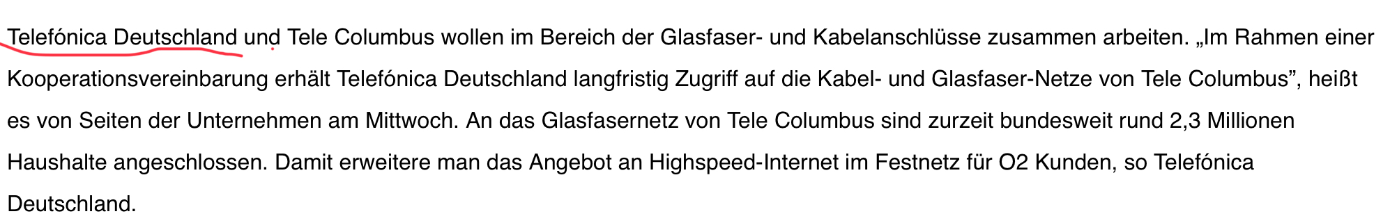 zwischen Telefonica Deutschland und Tele Columbus. Wenn  genügend Geld dadurch eingenommen wird ist es doch OK so.