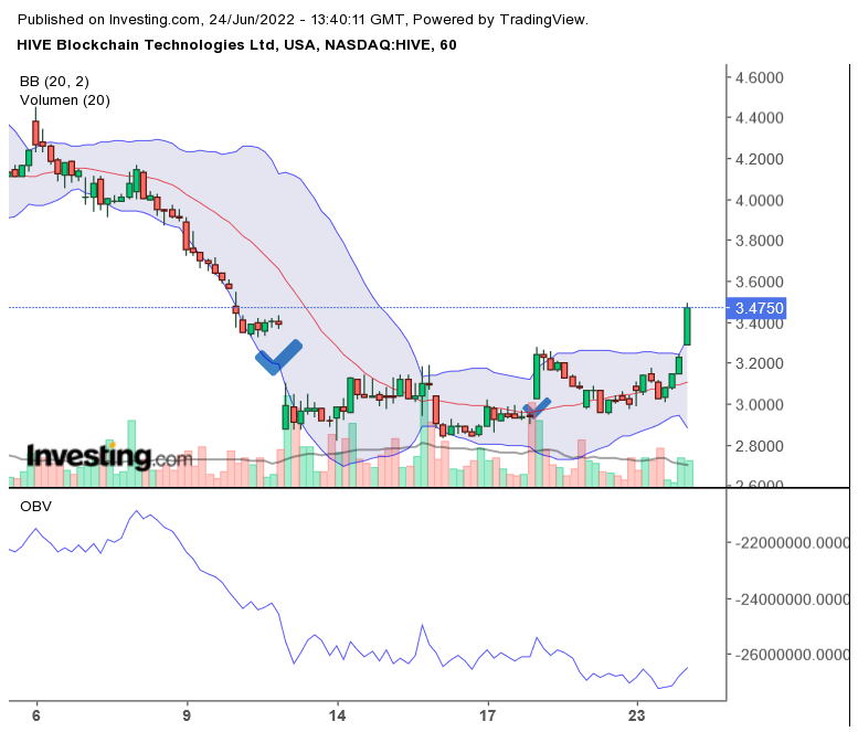 What this means: Hive Blockchain Technologies Ltd (HIVE) gets a very positive evaluation from InvestorsObserver's ranking system. An Overall Rank of 75 means that our comprehensive methodology rates Hive Blockchain Technologies Ltd above 75% of stocks.