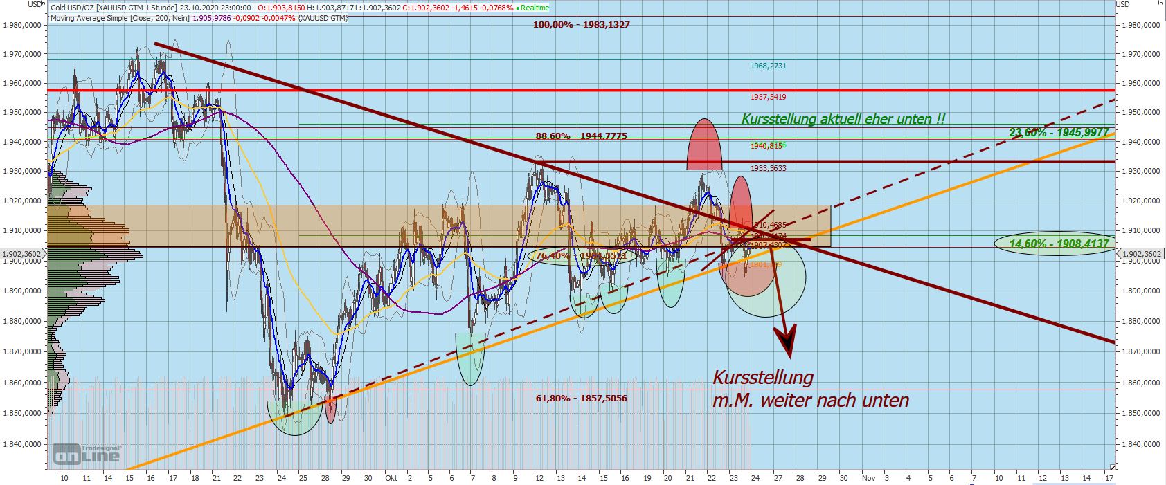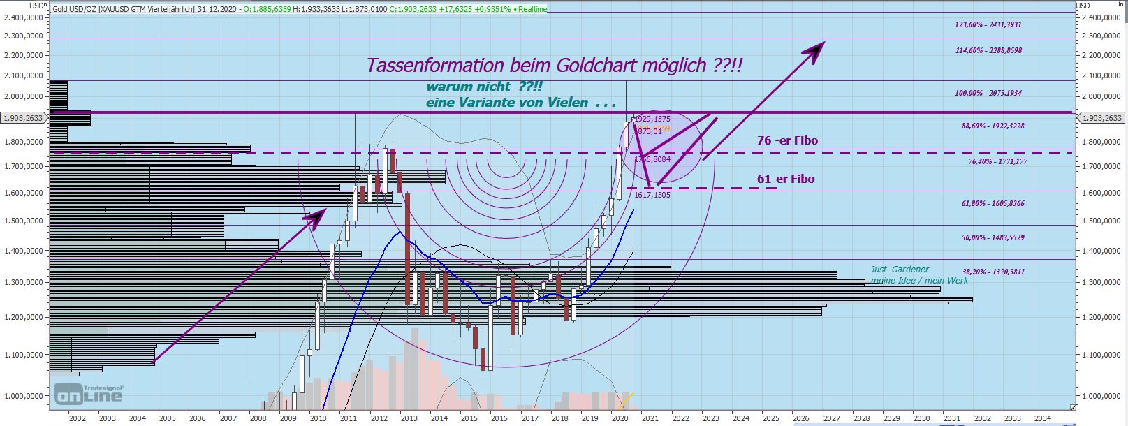 mehr Grundsätzliches: Auch wenn die Meisten von uns nach oben wollen, gilt es für Viele, sich unten nochmals gut einzudecken. Insbesondere bei 'Phantasie' (?) - Zielen von 3000 USD wollen etliche Banken und große Anleger, Fonds etc. sich unten eindecken bzw. UNTEN noch maximale Mengen an physischem Material einsammeln. Niemand hat in Stein gemeißelt, 1900 wäre die magische Schwelle, der Preis, den das Edelmetall wert wäre. Er, der Preis, fühlt sich halt eben hier wohl ;-)) Schwankungen bis runter Richtung 1850 kann man als 'normale Ausschläge' zu betrachten ... UND alle tönen, es wären volatile Zeiten zu erwarten: Volatilität ist keine Einbahnstrasse. Wirklich volatil wäre Meines Erachtens der Fall unter die 1800, 1700 oder sowas ...