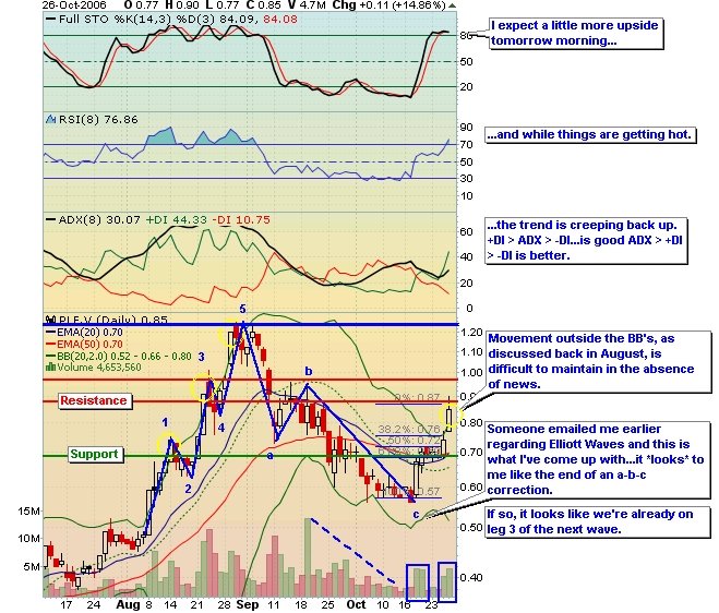 b) An INSTITUTION completed its program of driving the stock down over the last few weeks on low volume, and ACCUMULATING PLE on the above info.