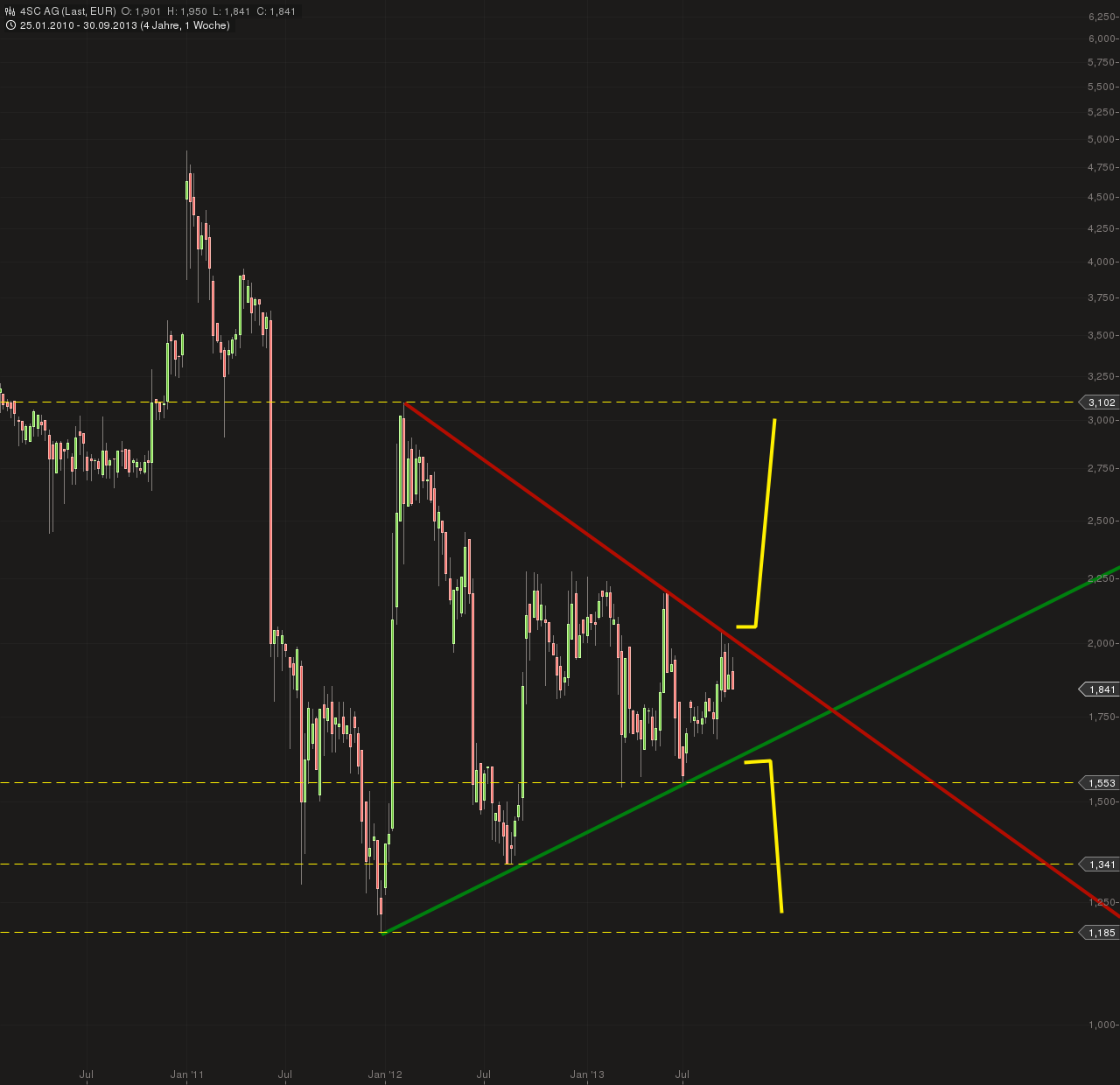 Hallo zusammen, ich persönlich glaube nicht, dass hinter den derzeitigen Kursverlusten wirklich etwas dahinter steckt, genauso wenig wie hinter den relativ steilen Anstiegen vor Kurzem. Biotech-Aktien treiben nun mal zwischen den Nachrichten (guten wie schlechten) häufig ziellos hin und her (zugegebenermaßen mit zunehmendem Abstand zur letzen Nachricht eher mit negativer Tendenz). Und gerade bei 4SC sind die letzten wirklich substanziellen Nachrichten schon eine Weile her, da werden halt einige Leute ungeduldig und verkaufen. Zumal man ja auch zugeben muss, das sich quasi das gesamte Aktienumfeld auf noch Norden macht und 4SC sich nicht rührt, da schwenken einige eben um. Normalerweise sind 4-5% Verlust an einem Tag schon ein Alarmzeichen. Ich rechne mir allerdings in solchen Fällen immer erst mal aus, wieviel Geld da wirklich geflossen ist, bevor ich in Panik (oder bei steilen Anstiegen in Euphorie) verfalle. Heute sind bis jetzt an allen Börsenplätzen zusammen (inkl. Tradegate) nicht mal 60.000 Aktien gehandelt worden. Beim derzeitigen Kurs bedeutet das ca. 100.000€ insgesamt, und dass obwohl bestimmt das eine oder andere Stop-Loss-Limit gerissen wurde, was die Umsätze quasi automatisch erhöht. Eine echte Massenflucht aus einer Aktie sieht anders aus. Ich denke, was wir hier gerade sehen ist nichts weiter, als dass aufgrund eines generell niedrigen Interesses an einer Aktie mit vergleichsweise geringem finanziellen Einsatz große Kursbewegungen erzeugt werden. Solange hier keine Nachrichten kommen, wird sich das auch nicht ändern, da wird es immer mal wieder relativ steil bergab und bergauf gehen. Die nächste Richtungsänderung mit Substanz kommt erst nach der nächsten Nachricht. Und dann kann es, je nachdem wie diese ausfällt, eben steil aufwärts oder abwärts gehen, auf jeden Fall aber dann mit mehr Umsatz dahinter. Soll keine Empfehlung (welcher Art auch immer) sein, nur meine Meinung. Viele Grüße vom Amateur |