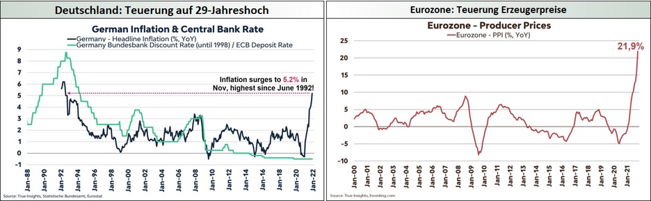 Im November 2021 beträgt die Inflation der Verbraucherpreise in Deutschland voraussichtlich 5,2% gegenüber dem Vorjahresmonat, so das Statistische Bundesamt aktuell. Legt man den Harmonisierten Verbraucherpreis Index (HVPI) zugrunde, liegt die jährliche Inflation sogar schon bei 6,0%.