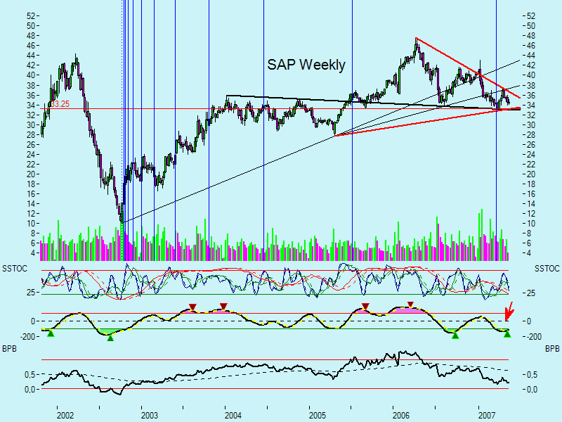 Im Voraus: Das Kursziel bei SAP kommt noch, die 34 wird halten und wie oben auch