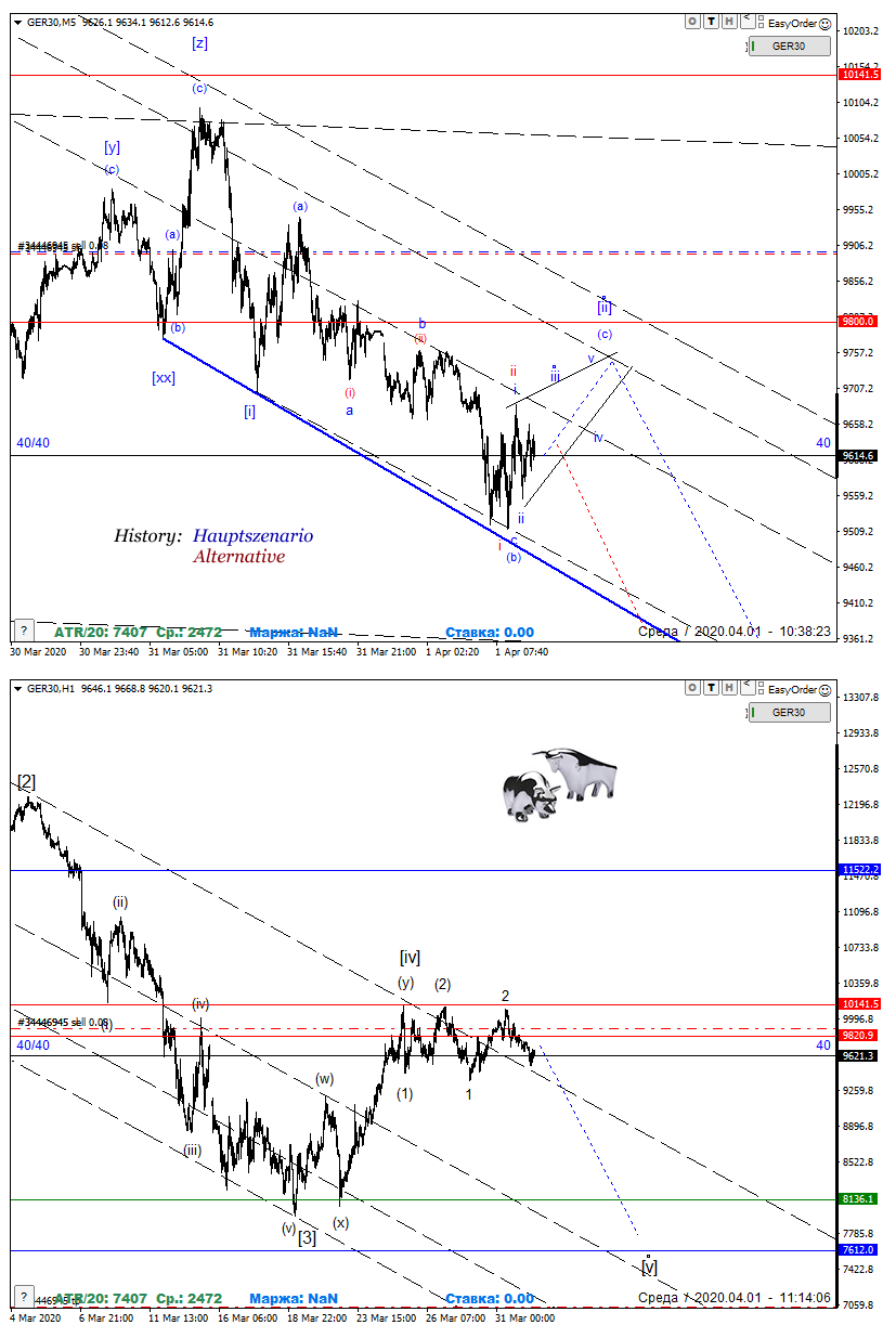 Für heute gilt folgendes: Welle (c) bildet sich als EDT aus und damit ist die Welle [ii] als Runningflat abgeschlossen. Laut EWA Regeln nach fertige Formation EDT und Runningflat, in beiden Fällen kommen sehr starke (Dynamische Bewegungen), was wir auch erwarten und was auch zu der 3 Welle passen würde. Welle [ii] korrigiert in den Bereich von 9750 – 9800 bis Eröffnung USA Markt. Danach müsste eigentlich Rally nach Süden endgültig anfangen, 8900 – 8800 wäre nicht schlecht für Heute ;-))))