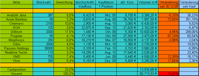 Bei den 20 Aktien waren dann aber auch einige die sich kaum oder schlecht entwickelten.