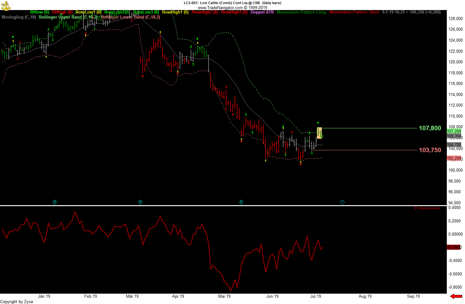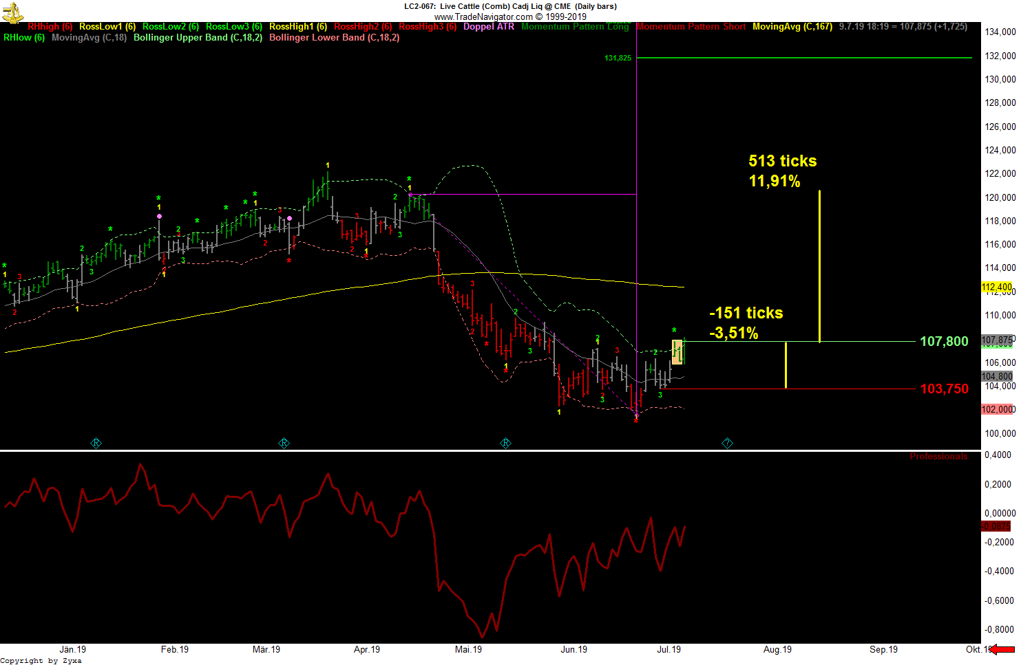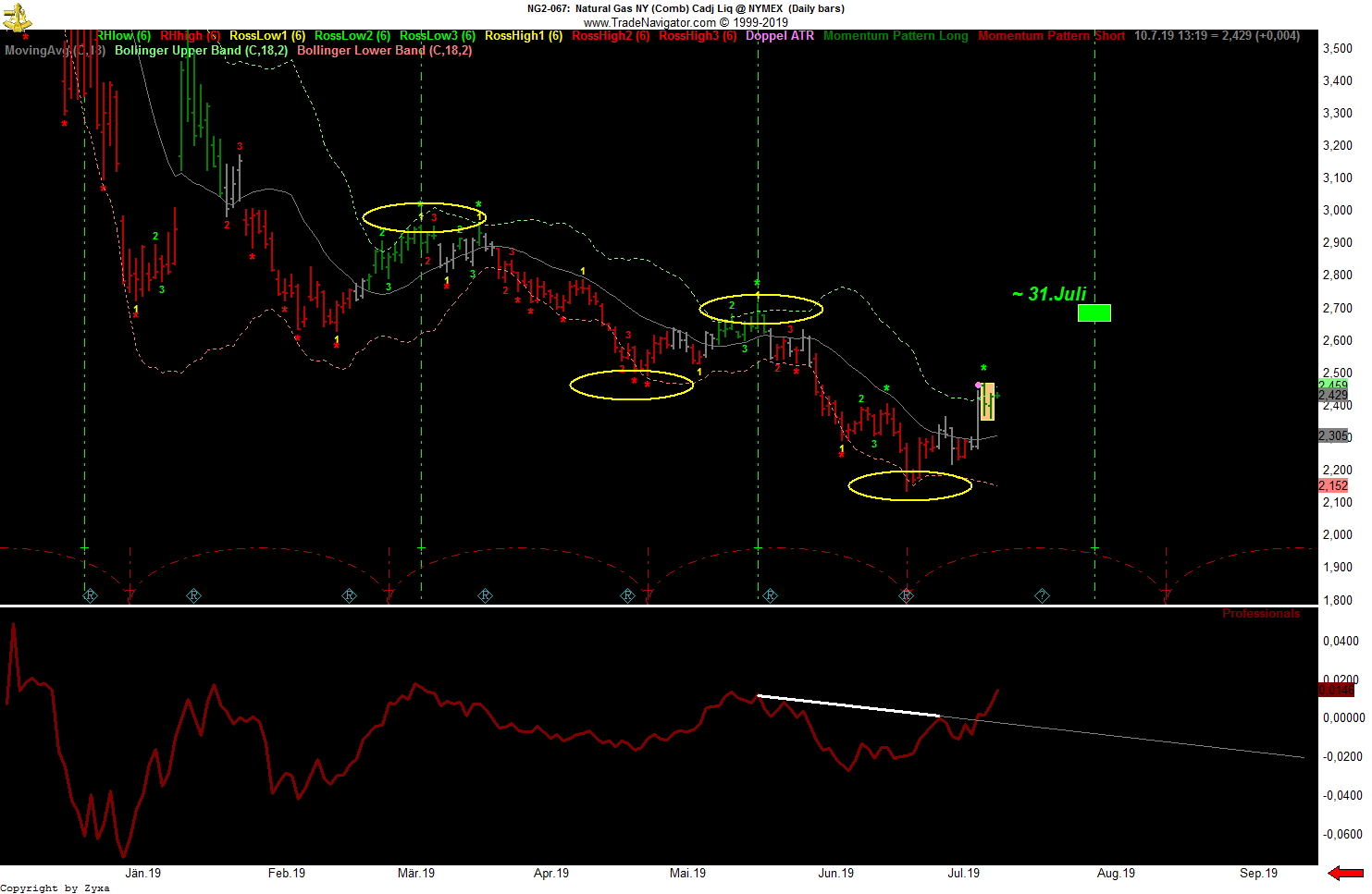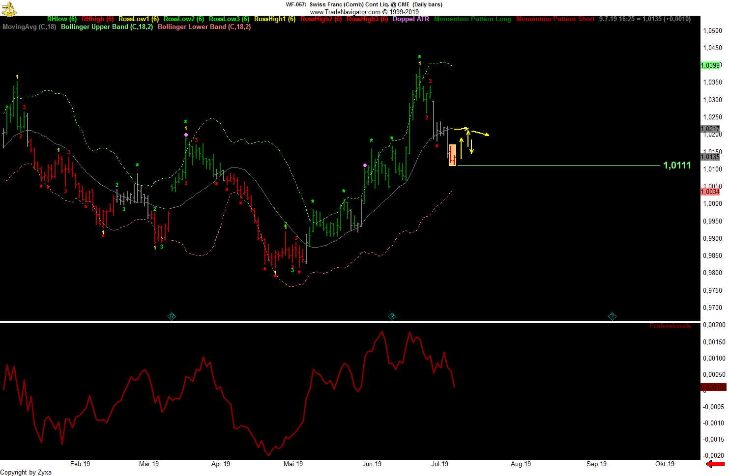 Alternativ kommt dann sein Trick des Traders ins Spiel. Im Beispiel Sojabohne haben wir laut Cot Report ein Short Signal. Am 27. Juni entstand ein Ross Hook....Mit TdT wäre Posi eins am 1. Juli passiert, und zwar am Tief des Vortages.
