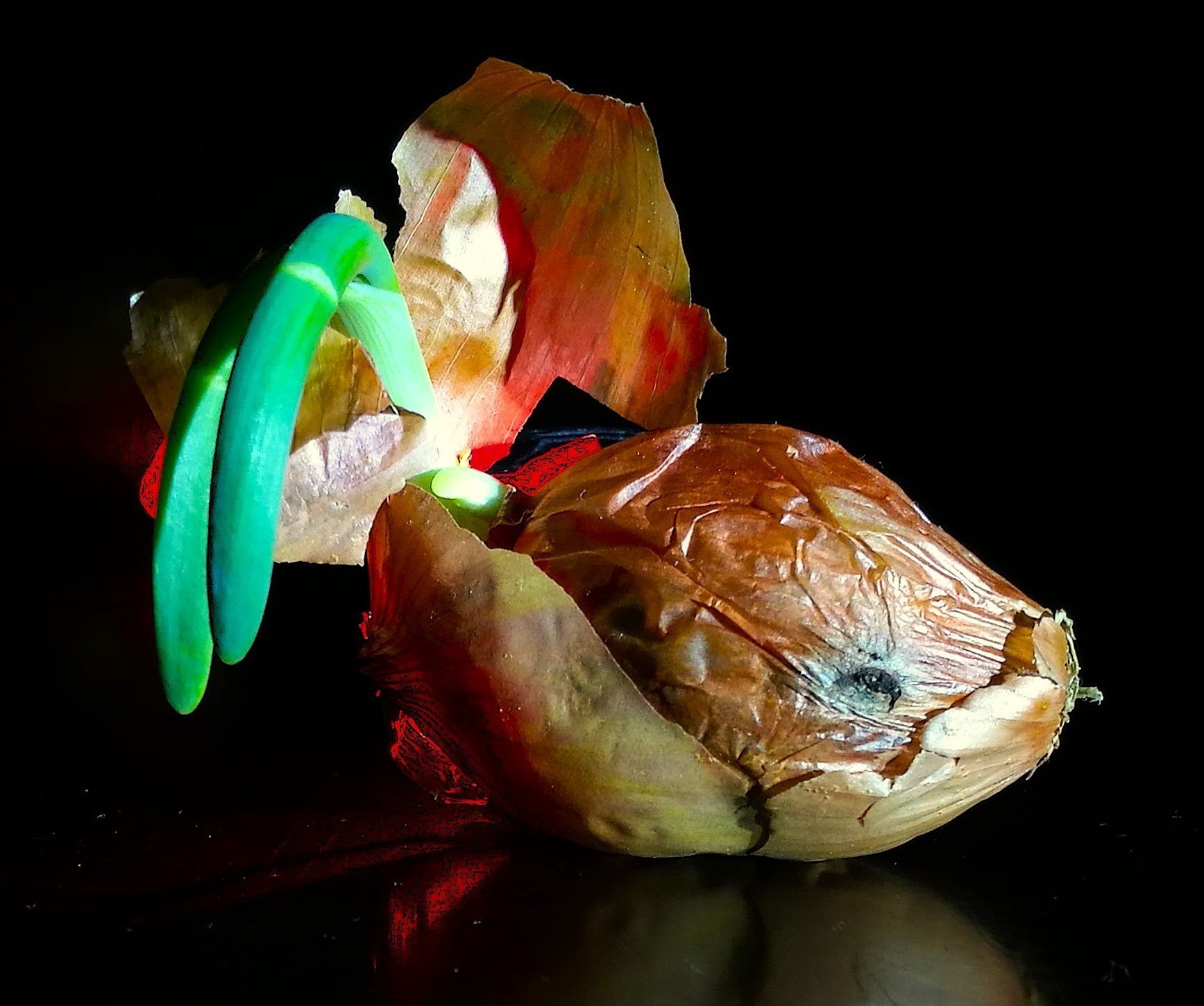Die grüne Nervatur des „Helms“ verrät