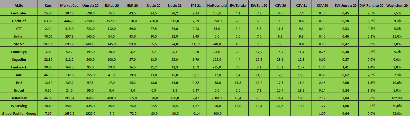 Es waren letztlich natürlich hauptsächlich die sogenannten Corona-Gewinner, wie Hellofresh, Global Fashion, Group oder Westwing, die den starken Anstieg von fast 60% des Wikifolios ermöglichten. Aber auch mein Dauerbrenner IVU hat genauso überzeugt wie das Timing beim Einstieg bei auch für 2021 interessanten Aktien wie EVN oder STO. Ich hoffe, 2021 geht ähnlich weiter, auch wenn man natürlich nicht wieder 60% erwarten kann. Meine Aussage war immer, dass dieses Wikifolio 15% p.a. erwirtschaften soll, um damit langfristig orientierten Investoren eine Beimischung für ihr Depot zur Altersvorsorge zu ermöglichen. Aktuell liege ich mit knapp 21% p.a. über dieser selbst auferlegten Marke. Wenn es bei diesen 21% auch die nächsten Jahre bleiben würde, vor allem mit dem mir eigenen Depotmanagement, das auf zu risikoreiche und hoch bewertete Investments verzichtet, wäre ich sehr zufrieden. Es gibt sicherlich von der Performance her besser Wikifolios, aber da werden auch oftmals deutlich höhere Risiken eingegangen und deutlich höhere Bewertungen akzeptiert, die in schwächeren Märkten zum Problem werden können. Ich bilde mir ein, da einen guten Kompromiss zwischen Chancenwahrnehmung und Risikobewusstsein gefunden zu haben.
