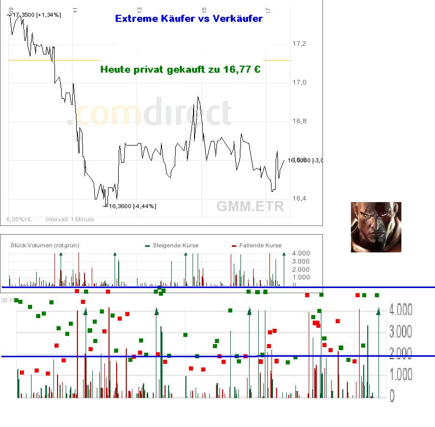 der letzte 8 Tage Abwärtstend liegt bei ca 6,20 € morgen zeigt sich ob der gebrochen wird wird und der Weg nach oben oder unten geht...akt bin ich positiv gestimmt und gehe auf ein Risiko von 1,5 % zum Nasen Tief/Stoplos ein...und der Starke letzte Verkauf mit 4500 Stk blieb über 16 €...+ Schlusskurs.