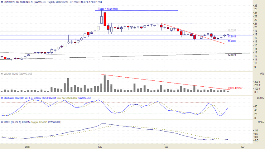 Durch Zusammenarbeit mit Uni Konstanz technologisch vorne dabei, mit der neuen Fabrik auch massemäßig ordentlich aufgestellt, die Zusammenarbeit mit neuen Partnern wird Früchte tragen. Ich meine aber, dass dieser derzeitige Zustand einschließlich Gewinn und Umsatzerwartungen in den momentanen Kurs - sagen wir mal ohne HBV-Pflege bis ca. 20 EUR - eingepreist ist. Die Marktkapitalisierung steht bei diesem Wert in einem für Solarbetriebe vergleichsweise vernünftigen Verhältnis zu erwartetem Umsatz und Gewinn 2006 und 2007. Also sind m.E. künftige Wertsteigerungen mit Verdoppelungsaussicht oder mehr nur mit weiteren erheblichen Kapazitätserweiterungen, Aquisitionen etc. zu erreichen. Ich für mein Teil habe SUNWAYS auf dem Weg von 1,80 EUR bis 18 EUR begleitet und werde der Aktie deshalb emotional stets verbunden bleiben....
