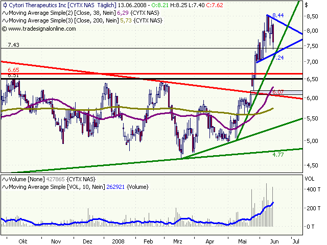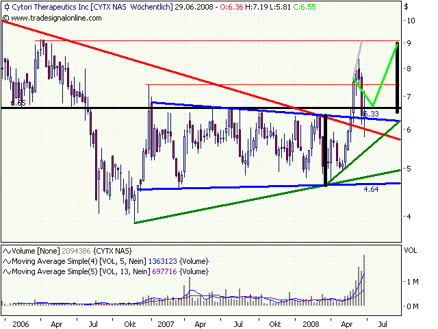 Gegen das Kursziel 9 spricht aus charttechnischer Sicht immer noch nichts. Unter 6 sollte es aber nicht mehr fallen.