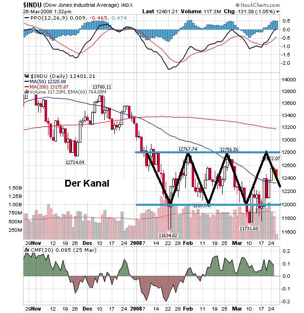 Bisher wirklich einfach zermürbend, seit Beginn 2008 bei 12000 das Auffangnetz und bei 12800 den Deckel für den Dow zu sehen :-((