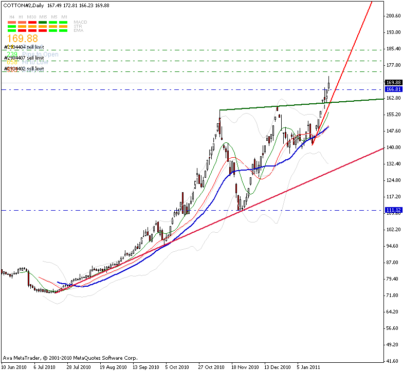 Also bei CFD´s würd ich mir vorher anschauen welchen Spread oder mit welcher Kommastelle die Anbieter rechnen. Beispielsweise bei einem Anbieter wie CMC Markets. 1 CFD (Kontrakt) Baumwolle = 16472,5 U$-Dollar Das heisst, hier hast du wegen der geringen Margin, die du hinterlegst (3% vom Gesamtwert) ein Verhältnis von 1 / 10000. Das heisst hier handelt man nicht mit dem realen Wert von 1,64725 U$-Doller sondern gleich mal mit dem 10.000 fachen. Kann sich ja jeder selber ausrechnen wieviel Gewinn/Verlust das bei einem Tag mit 5% Schwankung das sind. Die Aktuellen COT-Daten für Baumwolle sind: Commercials Netto Pos.: -43.105 (Änderung Vorwoche: -3.833) Large Speculators Netto Pos.: 31.552 (Änderung Vorwoche: +3.069) Small Speculators Netto Pos.: 11.553 (Änderung Vorwoche: +764) Weiss jemand wo man die Daten der Vorvorwochen anschauen kann um sich mal ein Bild zu machen, wieviel Einfluss die Zahlen auf die Bewegungen des realen Preises zu sagen haben? Also eigentlich die COT-Daten des letzten Jahres oder so. (Vielleicht findet sich hier ein fleissiger Sammler?) Grüsse $unny P.S. Was haltet ihr von der Nachricht, das die Chinesen Baumwolle horten, weil sie nun noch gieriger geworden sind? |