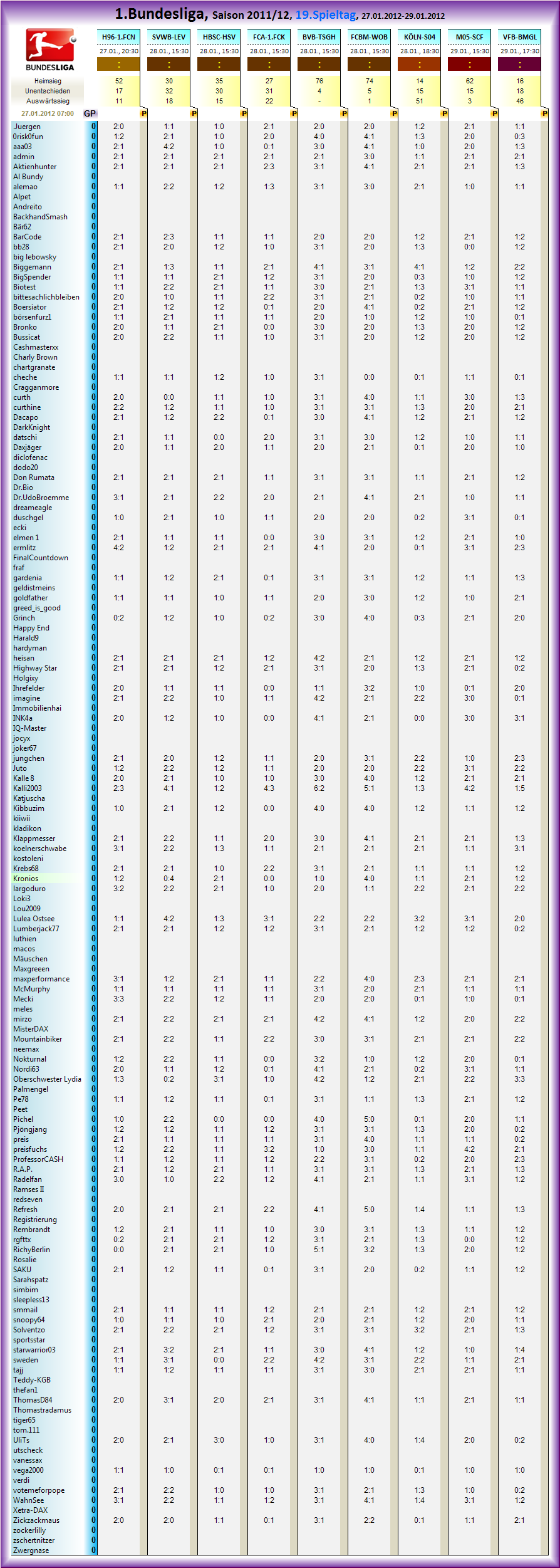 1.Bundesliga, Spieltag 19