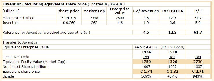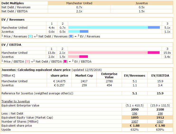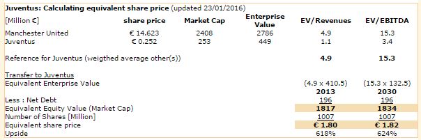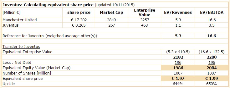 Auf basis von operative multiples kann (muss) juve gar in etwa verACHTfachen (im vergleich zu Branchenführer Manchester). Die berechnung dazu habe ich mehrfach gezeigt.