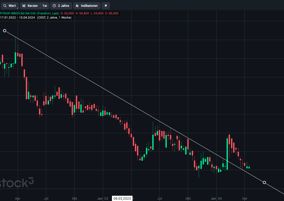 In meinem Post vom 28.08.24 erwähnte ich Risiken, welche bei der "Pyrum Innovations AG" vorhanden sind. So auch das Risiko "Hochfahren der Anlagen auf 100 %". Dieses überaus bedeutsame Risiko wurde nach einer Unternehmensmeldung weitestgehend abgearbeitet und somit aus dem Weg geräumt. Es gab nur ein kleineres Problem, welches sofort behoben werden konnte (Verstopfung d. Quenchpumpe). Zunächst hat es die Anleger beruhigt. Infolgedessen kam es erwartungsgemäß zu einem größeren Anstieg des Aktienkurses. Dieser führte sogar über die zuvor gerissene Support-Zone hinaus, konnte jedoch im weiteren Verlauf vorerst nicht gehalten werden. Es bleibt abzuwarten, ob es eine gewöhnliche Korrektur des starken Anstiegs ist und es im Anschluss wieder aufwärts über die Zone geht oder ob es doch nur ein Strohfeuer ist.