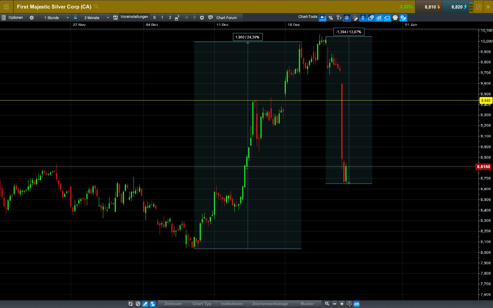 First Majestic: Risiko- reich – aber mit Chancen Bei den meisten Silber- Aktien gab es in den ver- gangenen Wochen einen regelrechten Sell-off. Die Schwäche beim Silberpreis bis Mitte Juli gepaart mit teilweise schwachen Quar- talszahlen lasteten schwer auf den meisten Silberprodu- zenten. Doch das bietet auch Chancen: Der Silberpreis müsste sich in einer nachhaltigen Aufwärtsbewegung besser entwickeln als der Goldpreis. Und davon prof i tie- ren natürlich die Silberkonzerne. Einen Blick ist dabei sicherlich die Aktie von First Ma- jestic wert. Der in Mexiko tätige Silberproduzent litt un- ter dem zuletzt wieder festeren Peso gegen den US-Dol- lar, aber auch unter Streiks auf den Minen. Dies führte zu einer niedrigeren Produktion im Verbund mit höheren Kosten. In Zahlen las sich das so: Im zweiten Quartal fi el die Silberproduktion im Vergleich zum ersten Quartal um 16 Prozent. Die Kosten stiegen um 19 Prozent auf 14,58 Dollar je Unze. Doch dieser Ef f ekt sollte vorüberge- hender Natur sein. CEO Keith Neumeyer meinte, im zweiten Halbjahr werde sich die Lage normalisieren. „Im zweiten Quartal gab es unglücklicherweise einige Pro- bleme, die mittlerweile aber gelöst sind“, sagt Keith Neu- meyer. Das Gute: Mit 126,9 Millionen Dollar Cash hat First Majestic noch immer ein gutes Polster. Dazu arbei- tet das Unternehmen in einigen Minen daran, die Unter- grund-Infrastruktur auszubauen. Aber solche Maßnah- men werden sich erst zeitversetzt in einer höheren Pro- duktion bei niedrigeren Kosten niederschlagen. Das zweite Quartal sollte ein Ausrutscher gewesen sein. Setzen Gold und Silber wie erwartet im Herbst zu einer Rallye an, dürf t en die Silberaktien zurück in das Ram- penlicht rücken. Mit First Majestic Silver setzen Anleger auf einen der größeren primären Silberproduzenten, der entsprechend sensibel auf Veränderungen beim Silber- preis reagiert.
