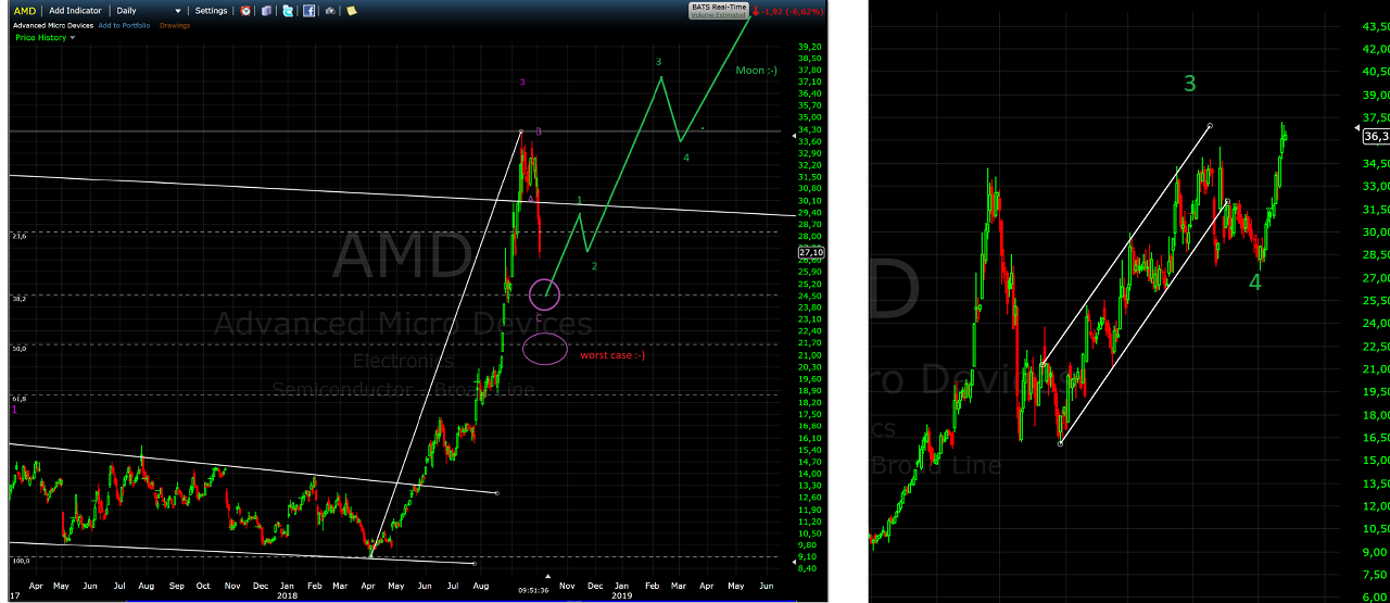 Es gilt die alte Spitze von 35.5 zu überspringen um unser definiertes KZ für amd von 38 Dollar zu sehen