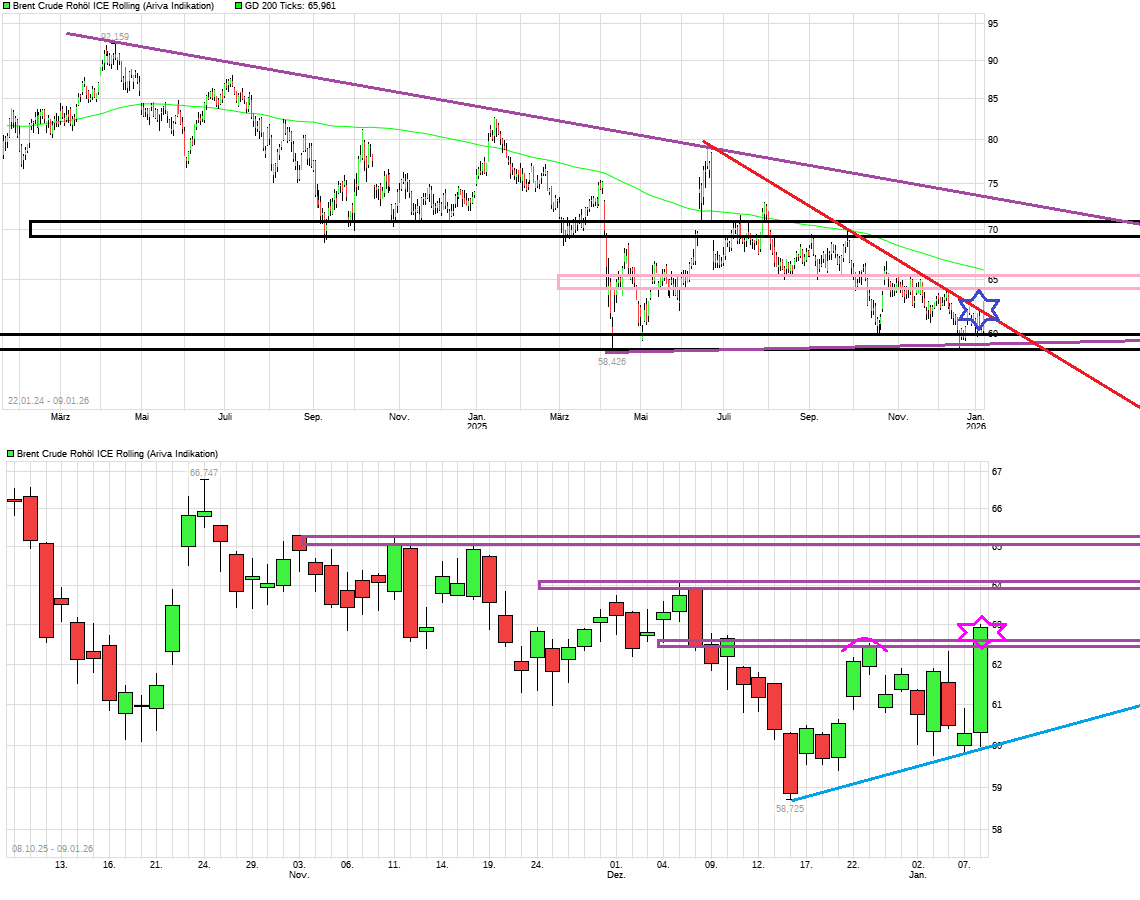 Venezuela hat die weltweit größten Reserven, kann diese aber wegen maroder Anlagen kaum fördern und hat zudem wegen des Drucks der Vereinigten Staaten nur wenige Abnehmer, sodass Venezuela derzeit nur einen sehr geringen Teil zur weltweiten Ölproduktion beisteuern kann. Mittelfristig könnte also Venezuela das derzeit weltweit hohe Ölangebot noch erhöhen. Experten wie die Analysten der US-Investmentbank Goldman Sachs (Goldman Sachs Aktie) gehen davon aus, dass es im laufenden Jahr ein Überangebot an Öl geben wird. Sie rechnen daher mit einem weiteren Preisrückgang. 2025 waren die Preise für Öl um fast ein Fünftel gefallen, nachdem sie auch in den beiden Jahren davor bereits gesunken waren.